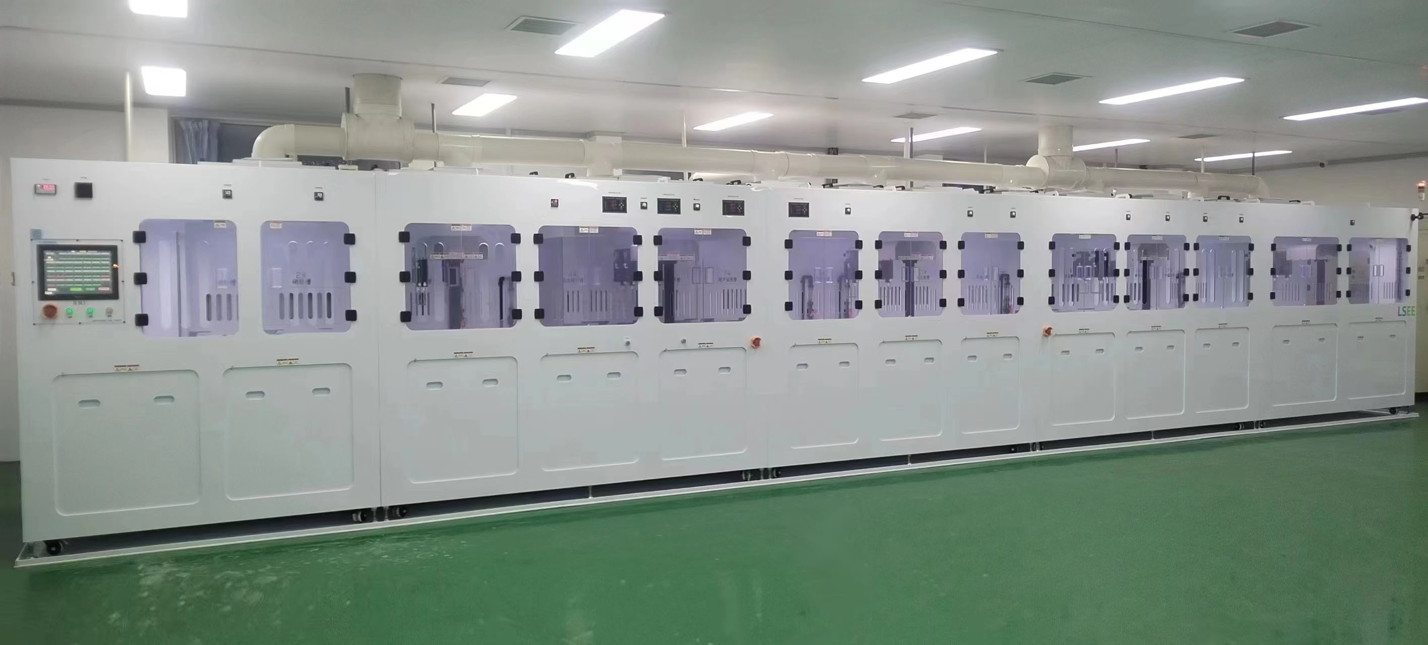 1、機臺采用進口勞士領板材,長期可工作在酸腐蝕環境,堅固耐用,雙層防漏 。2、全自動設計硅片化學法鍍鎳鍍金清洗設備,鍍鎳中可提動動作。3、鎳水槽采用五面石英加熱缸,可底部排放設計,溫控精度±1°C。4、控制部分采用進口品牌PLC 和HMI,所有可能與酸霧接觸的電氣及線路均經PFA防腐隔絕處理;5、機臺前部配備有PTFE純水槍和PTFE氮氣槍各1只置于右側。6、設備設計標準按半導體行業標準(SEMI-S2-93)執行,ISO9001質量管理體系進行規范和保證。